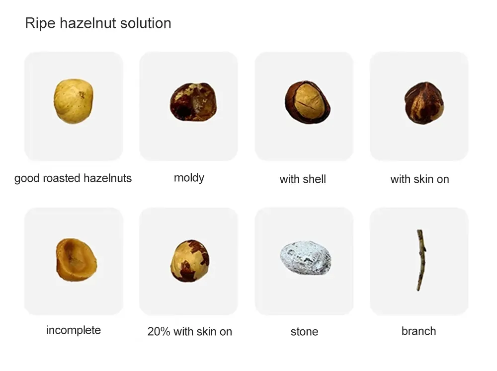 Dedicated algorithm models: Built-in specialized recognition models for various nuts, including almonds, cashews, pistachios, macadamias, pecans, and walnut kernels, to identify unique defects like seed coats and membranes.